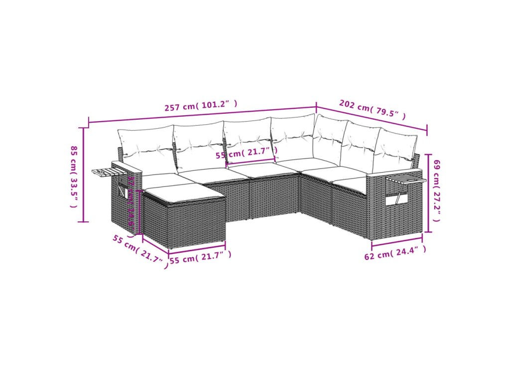 7dílná zahradní sedací souprava s poduškami šedá polyratan 3227047