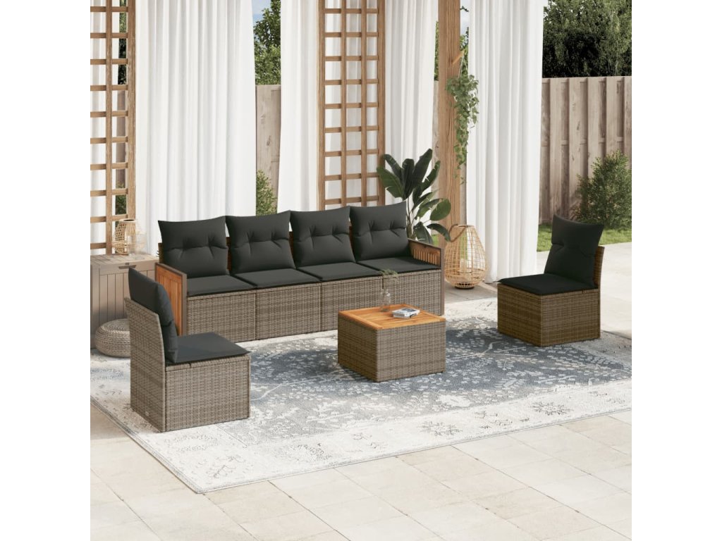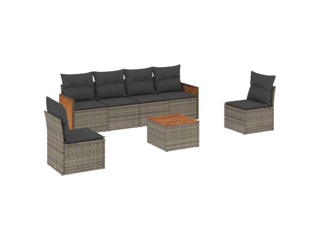 7dílná zahradní sedací souprava s poduškami šedá polyratan 3227551