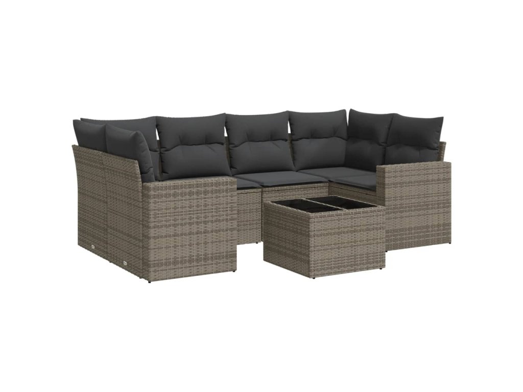 7dílná zahradní sedací souprava s poduškami šedá polyratan 3251057