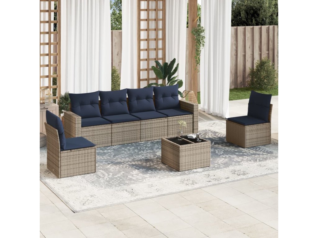 7dílná zahradní sedací souprava s poduškami šedá polyratan 3251158