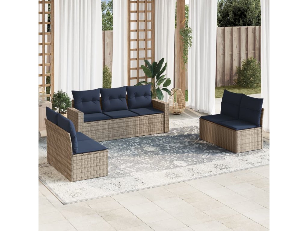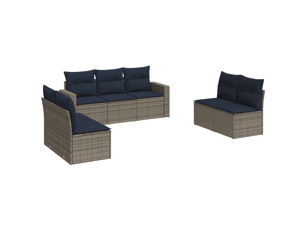 7dílná zahradní sedací souprava s poduškami šedá polyratan 3251168