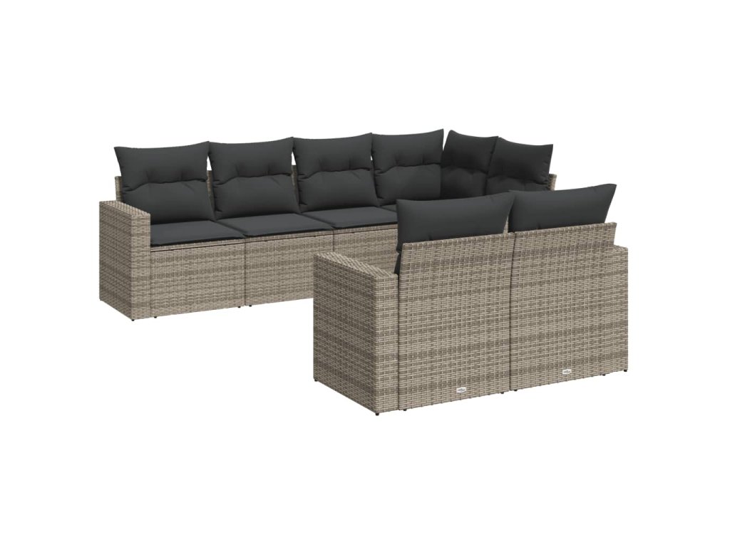 7dílná zahradní sedací souprava s poduškami šedá polyratan 3251547