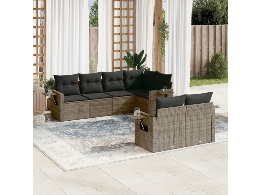 7dílná zahradní sedací souprava s poduškami šedá polyratan 3252747