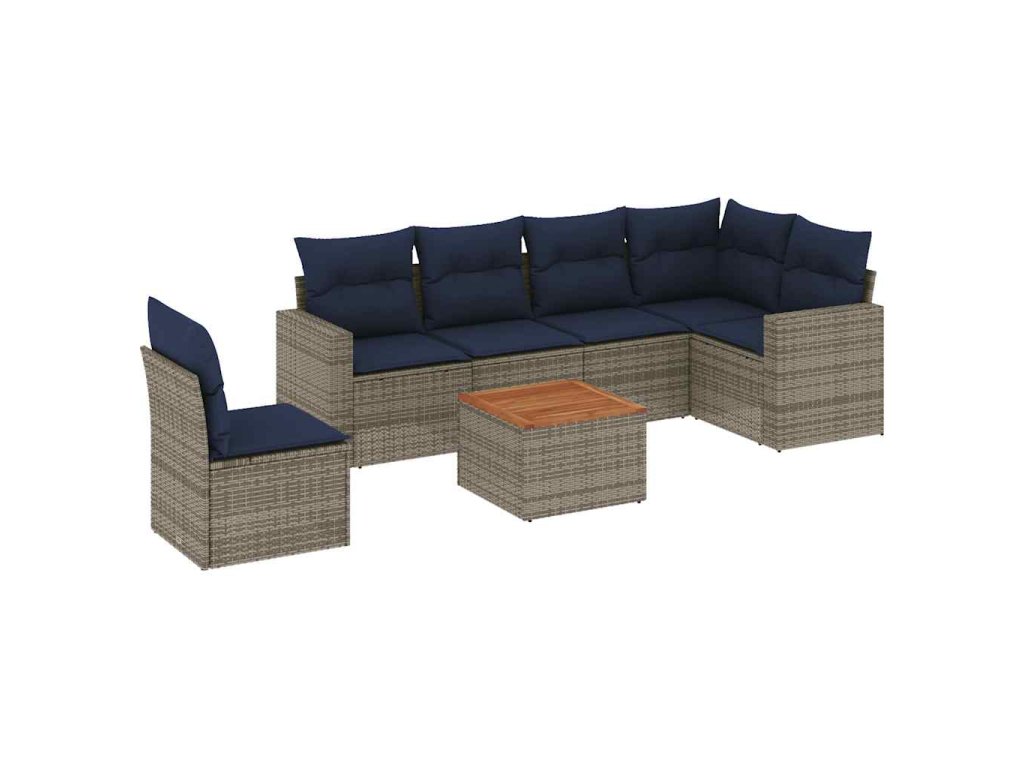 7dílná zahradní sedací souprava s poduškami šedá polyratan 3256481