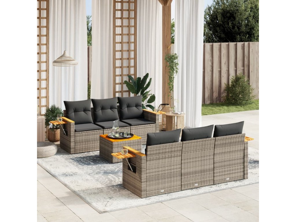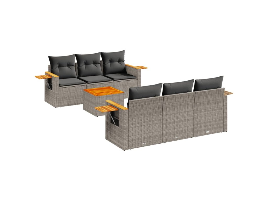 7dílná zahradní sedací souprava s poduškami šedá polyratan 3259036