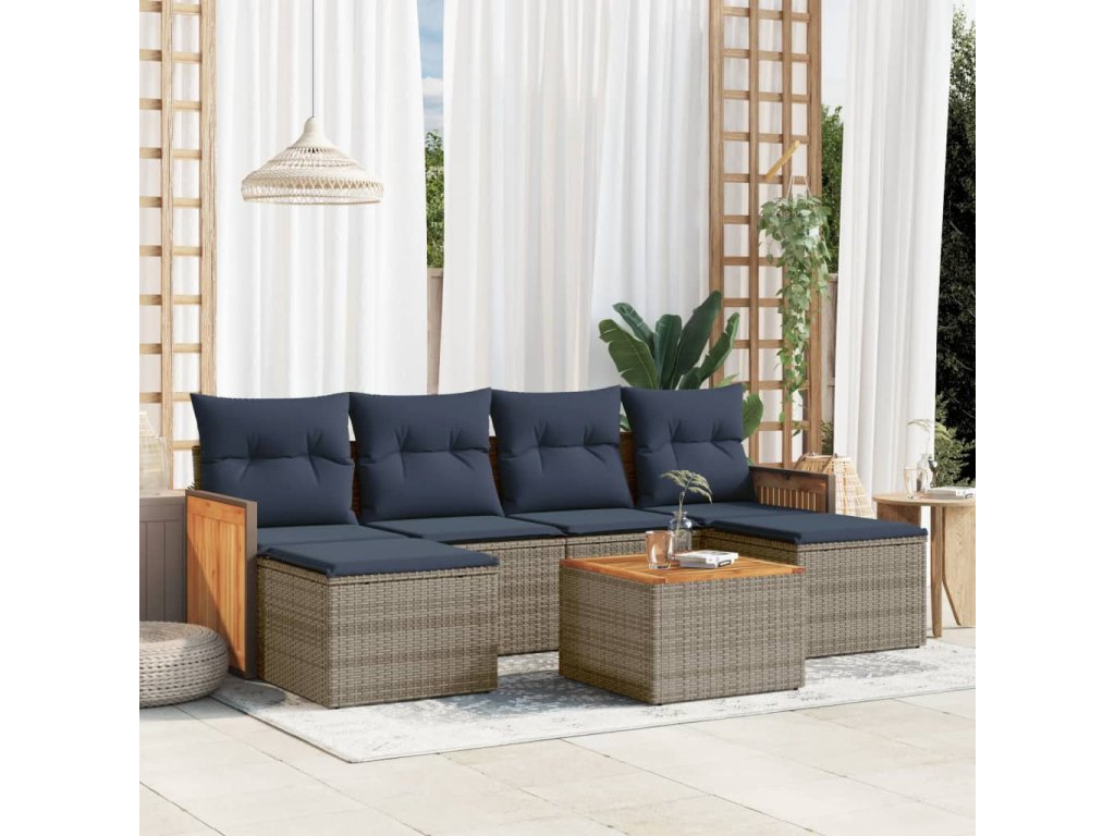 7dílná zahradní sedací souprava s poduškami šedá polyratan 3260311