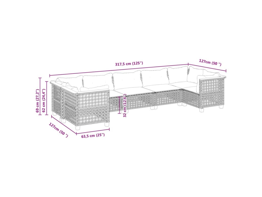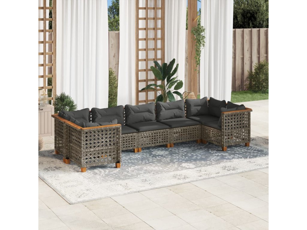 7dílná zahradní sedací souprava s poduškami šedá polyratan 3261975