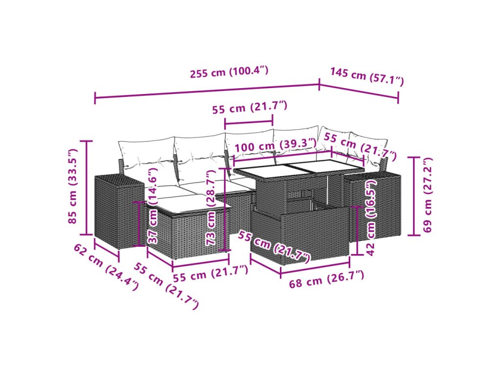 Tato zahradní sedací souprava je dokonalým doplňkem vaší zahrady, terasy nebo dvorku a poskytne vám pohodlné a příjemné místo, kde si můžete povídat s rodinou a přáteli nebo jen tak odpočívat a užívat si pobyt venku.