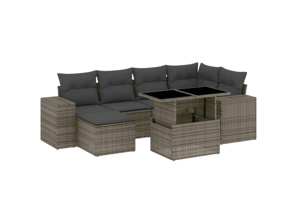 7dílná zahradní sedací souprava s poduškami šedá polyratan 3269310