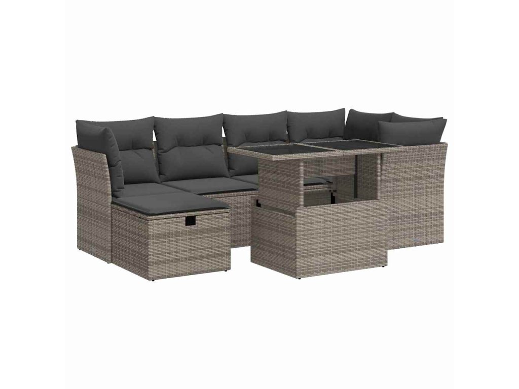 7dílná zahradní sedací souprava s poduškami šedá polyratan 3327780