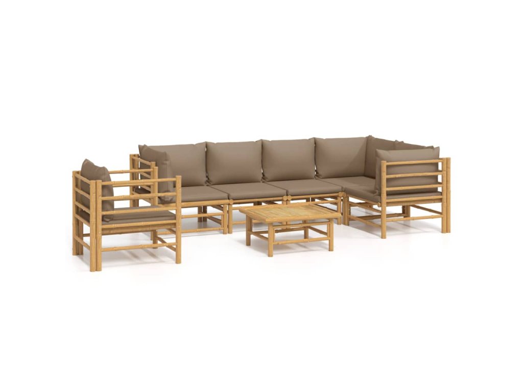 7dílná zahradní sedací souprava s taupe poduškami bambus 3155125