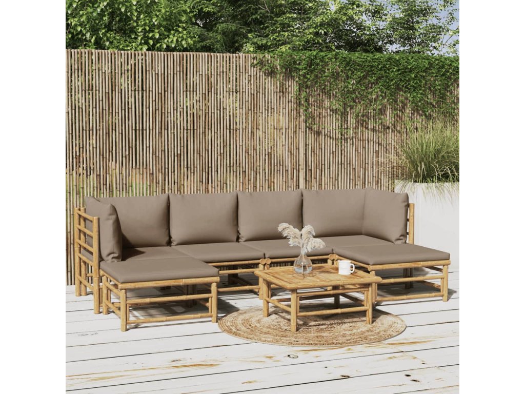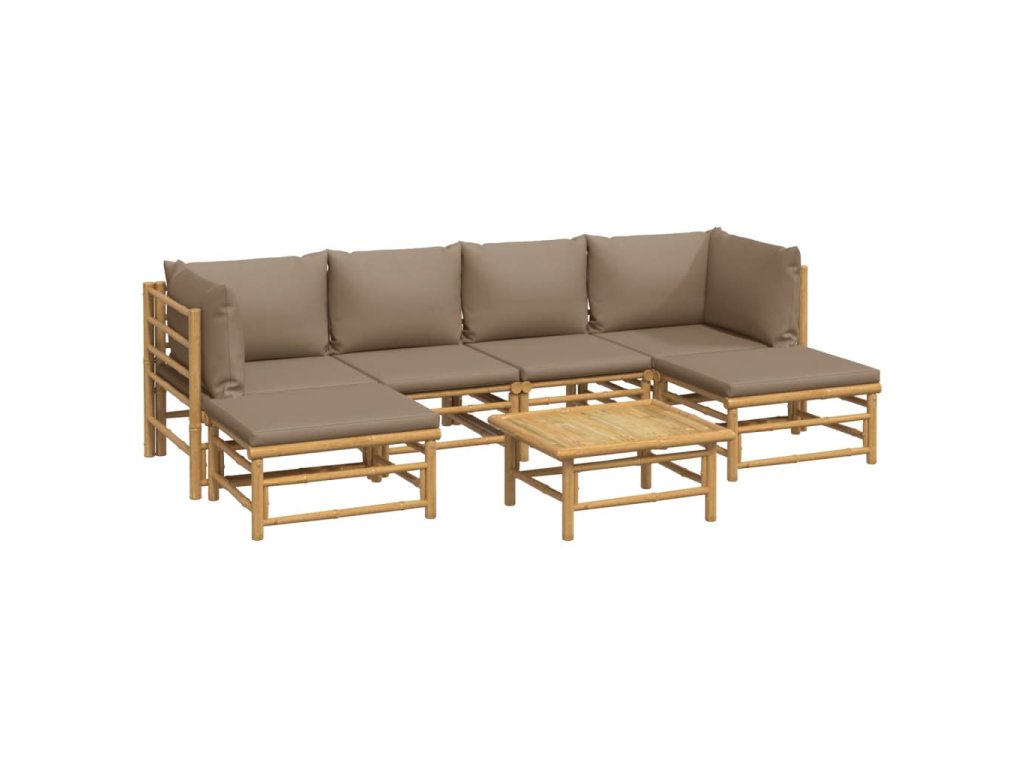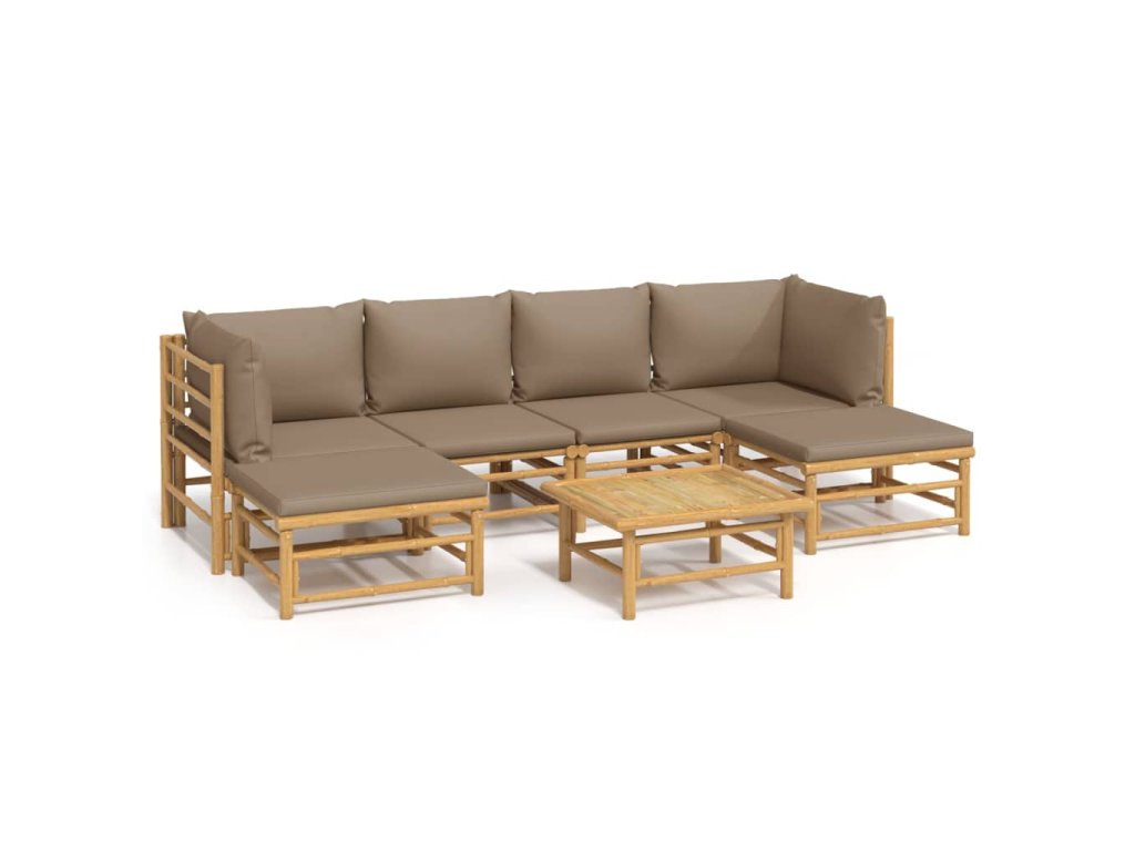 7dílná zahradní sedací souprava s taupe poduškami bambus 3155133