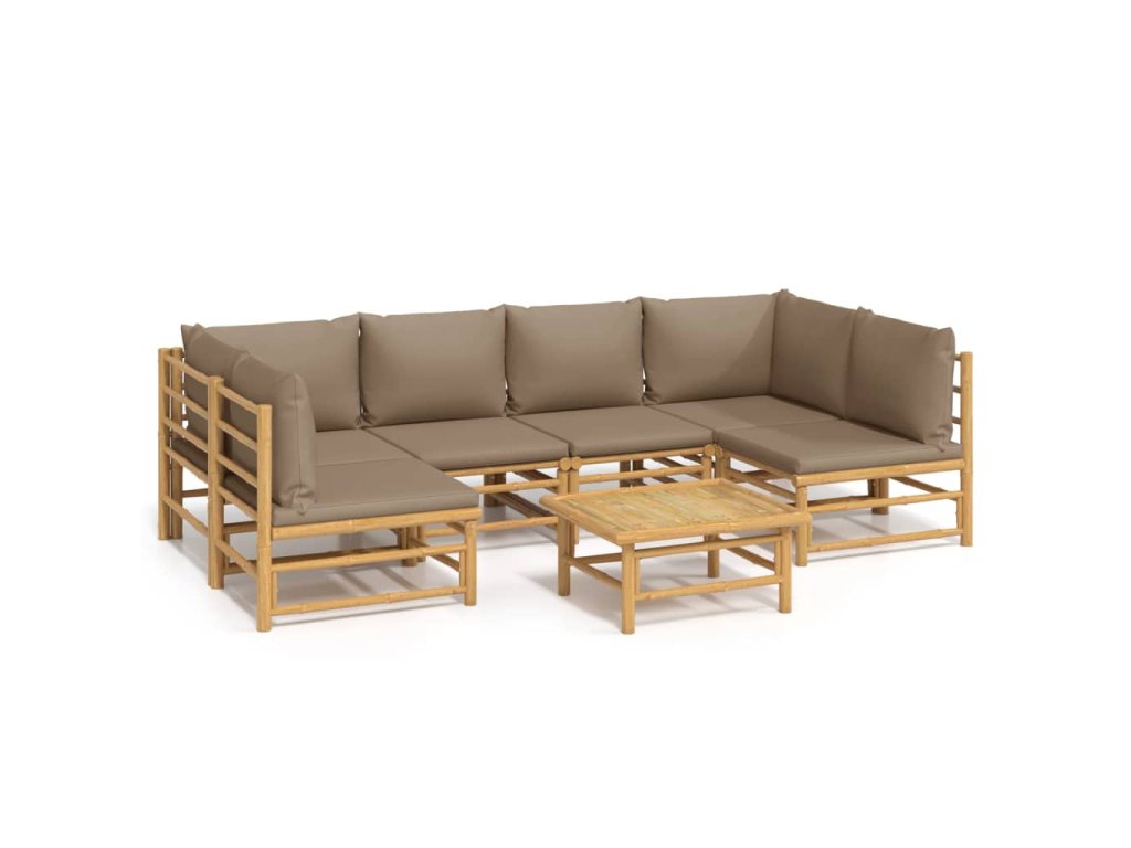 7dílná zahradní sedací souprava s taupe poduškami bambus 3155134