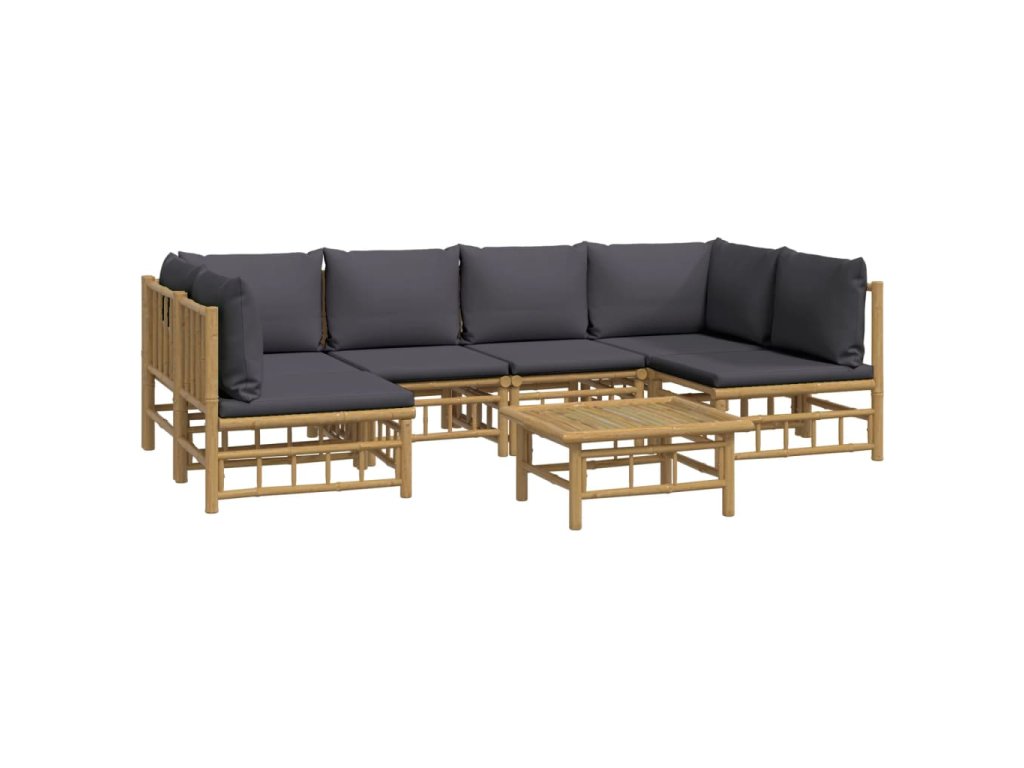 7dílná zahradní sedací souprava s tmavě šedými poduškami bambus 3155230