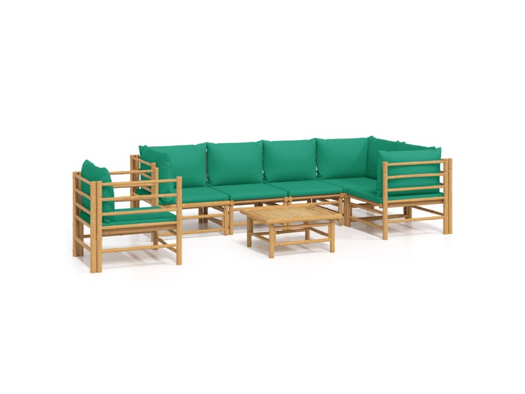 7dílná zahradní sedací souprava se zelenými poduškami bambus 3155157