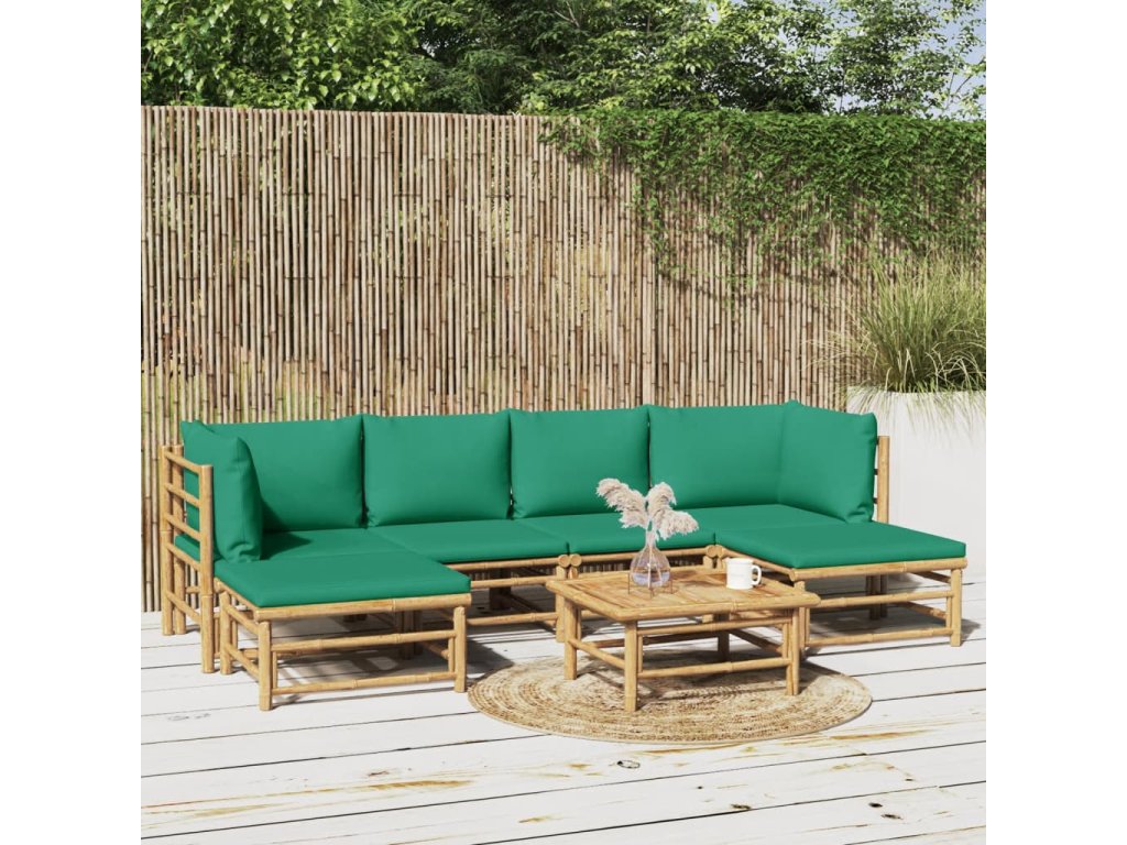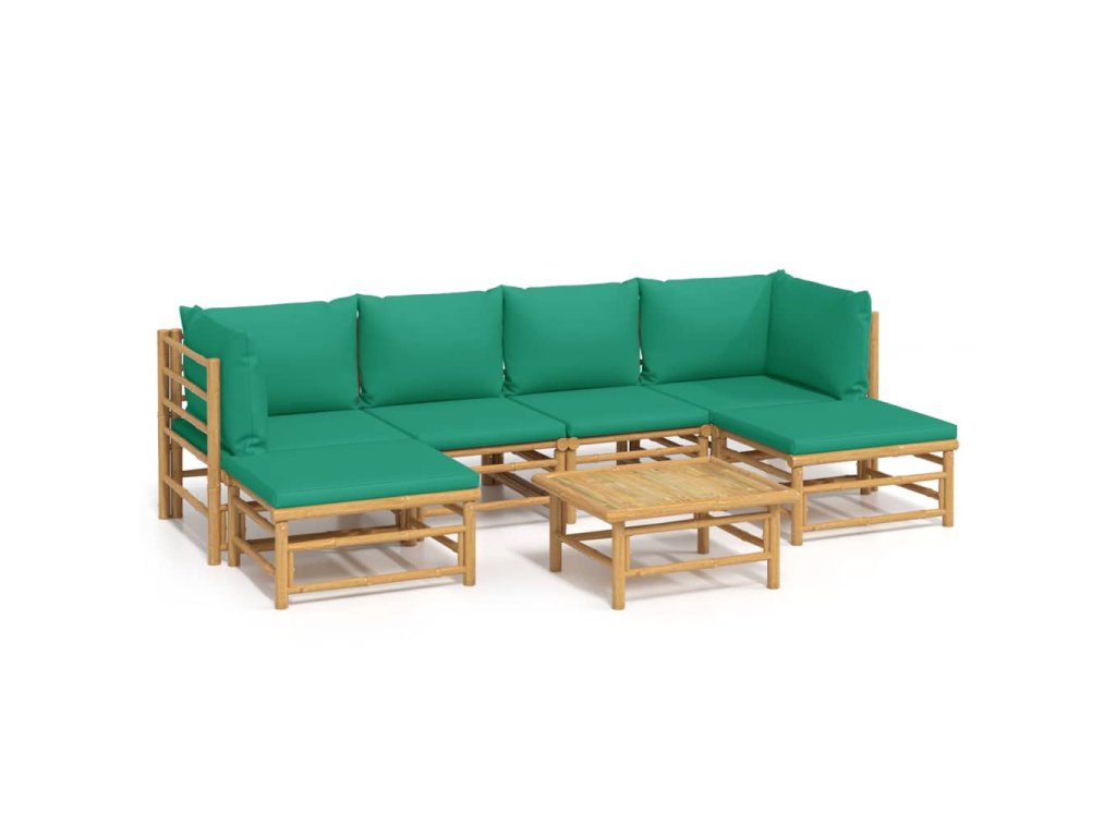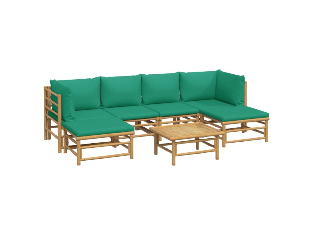 7dílná zahradní sedací souprava se zelenými poduškami bambus 3155165