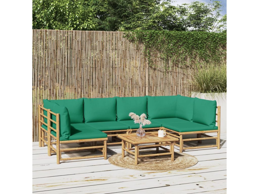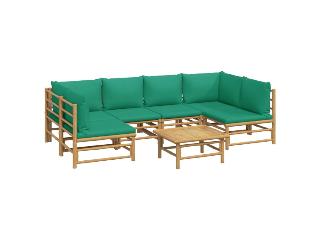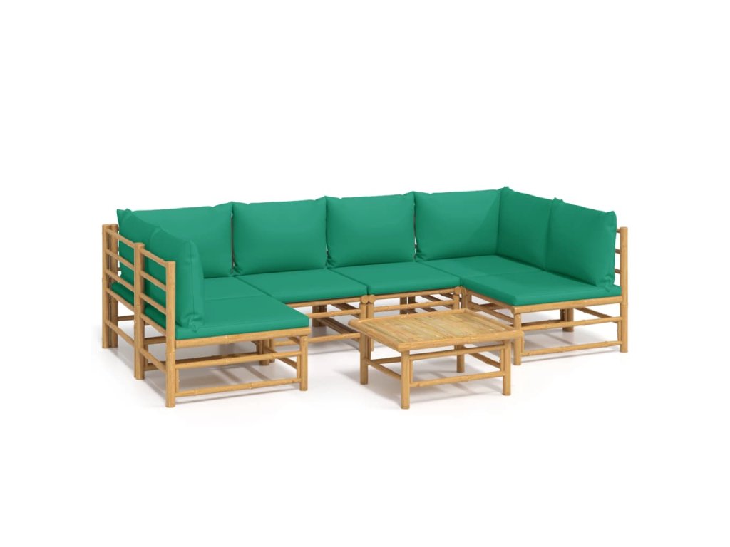 7dílná zahradní sedací souprava se zelenými poduškami bambus 3155166