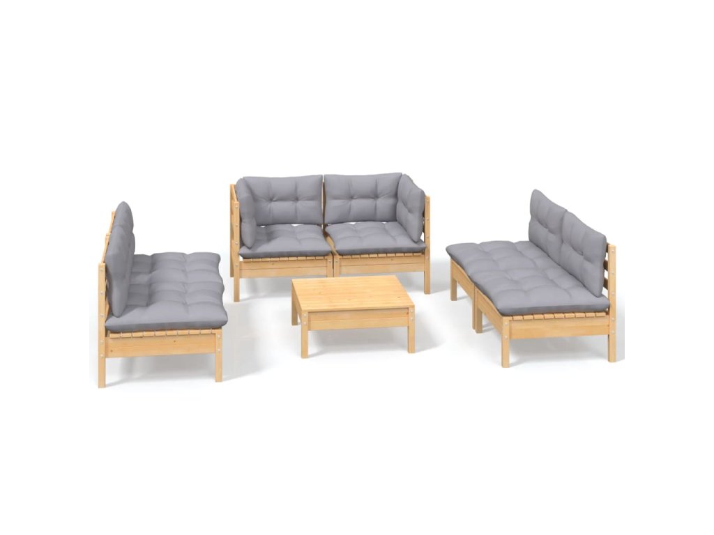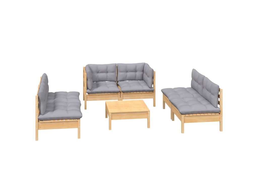 7dílná zahradní sedací souprava šedé podušky masivní borovice 3096213