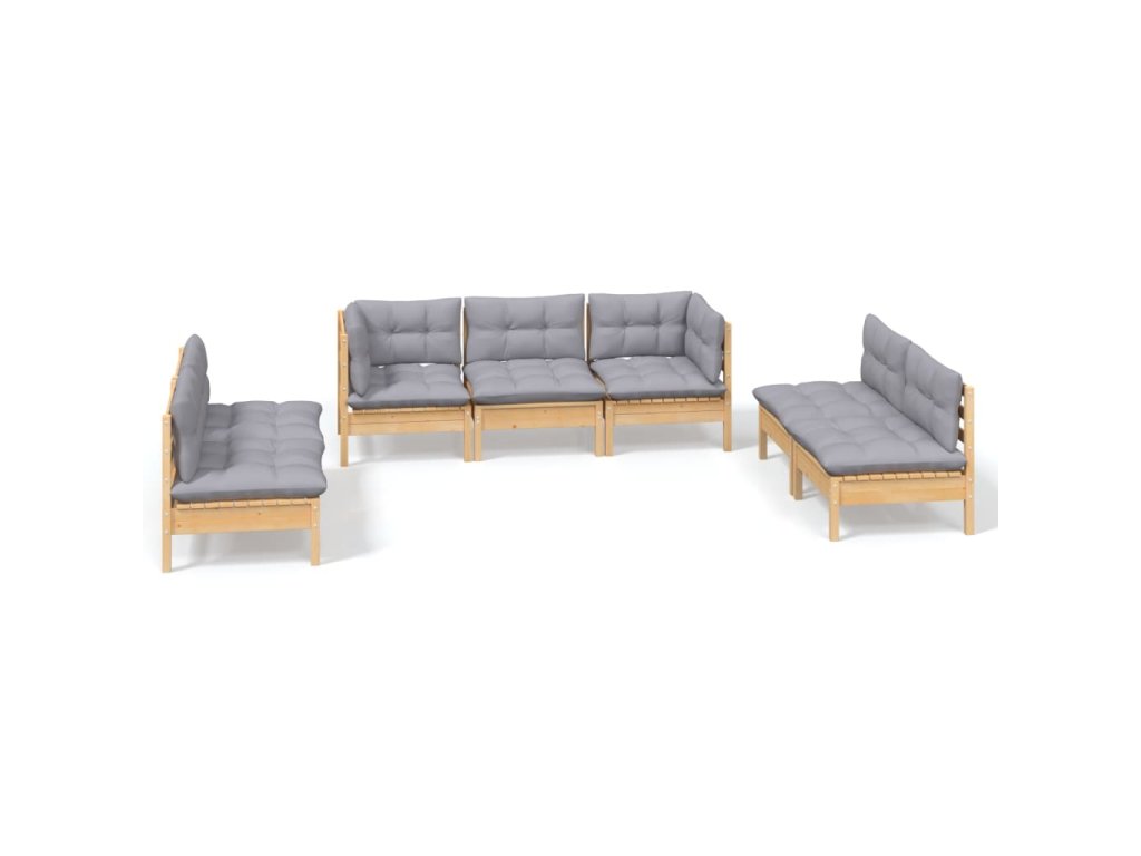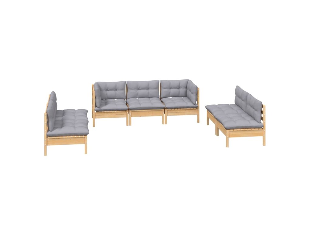 7dílná zahradní sedací souprava šedé podušky masivní borovice 3096219