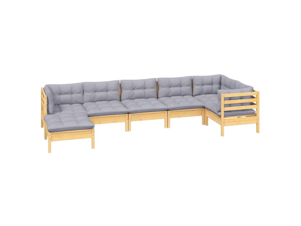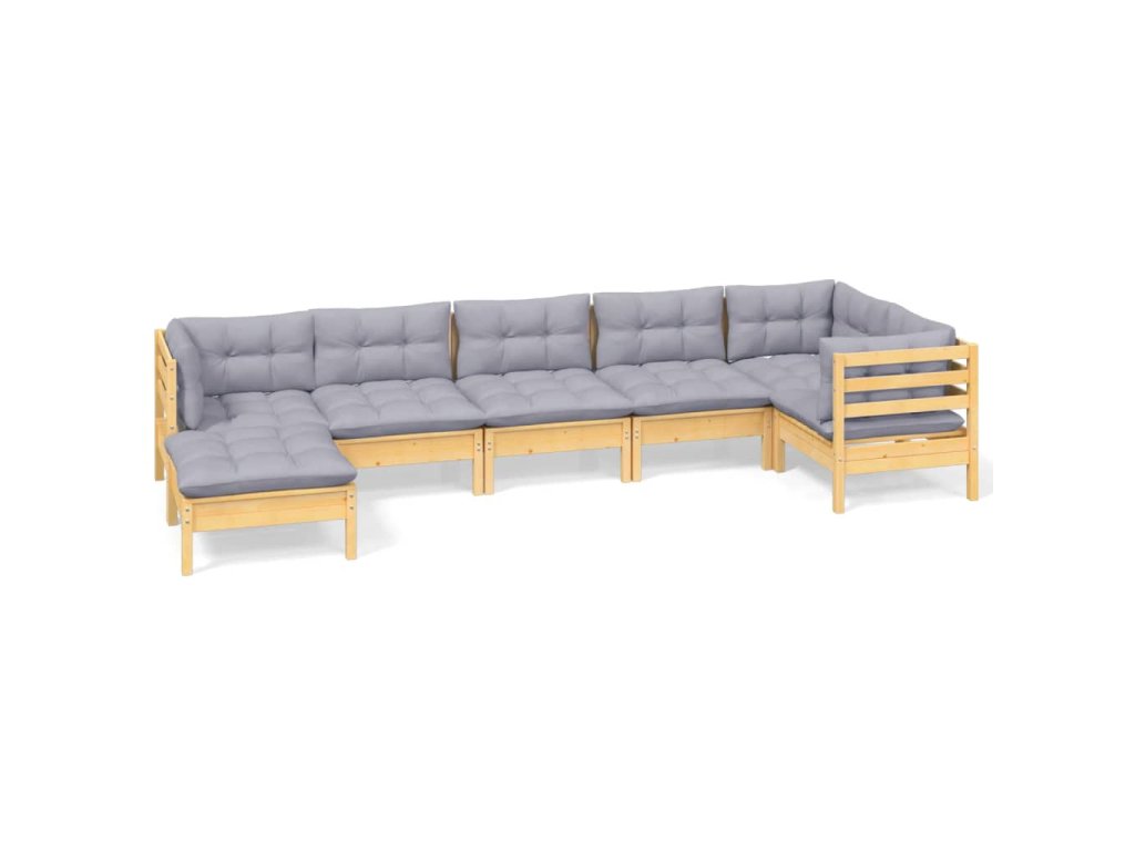 7dílná zahradní sedací souprava šedé podušky masivní borovice 3096549