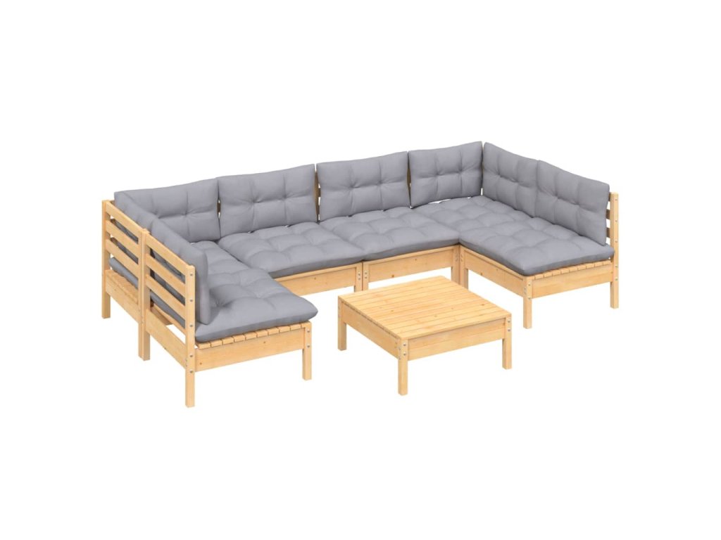 7dílná zahradní sedací souprava šedé podušky masivní borovice 3097156