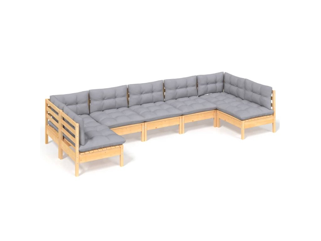 7dílná zahradní sedací souprava šedé podušky masivní borovice 3097162