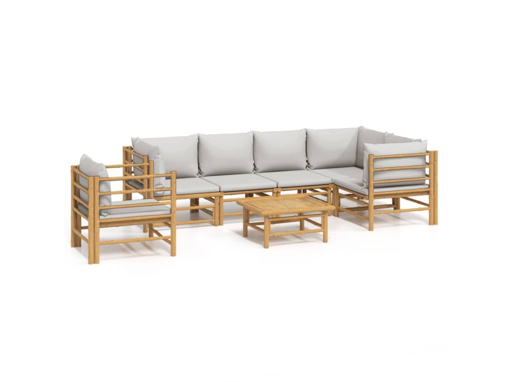 7dílná zahradní sedací souprava světle šedé podušky bambus 3155093