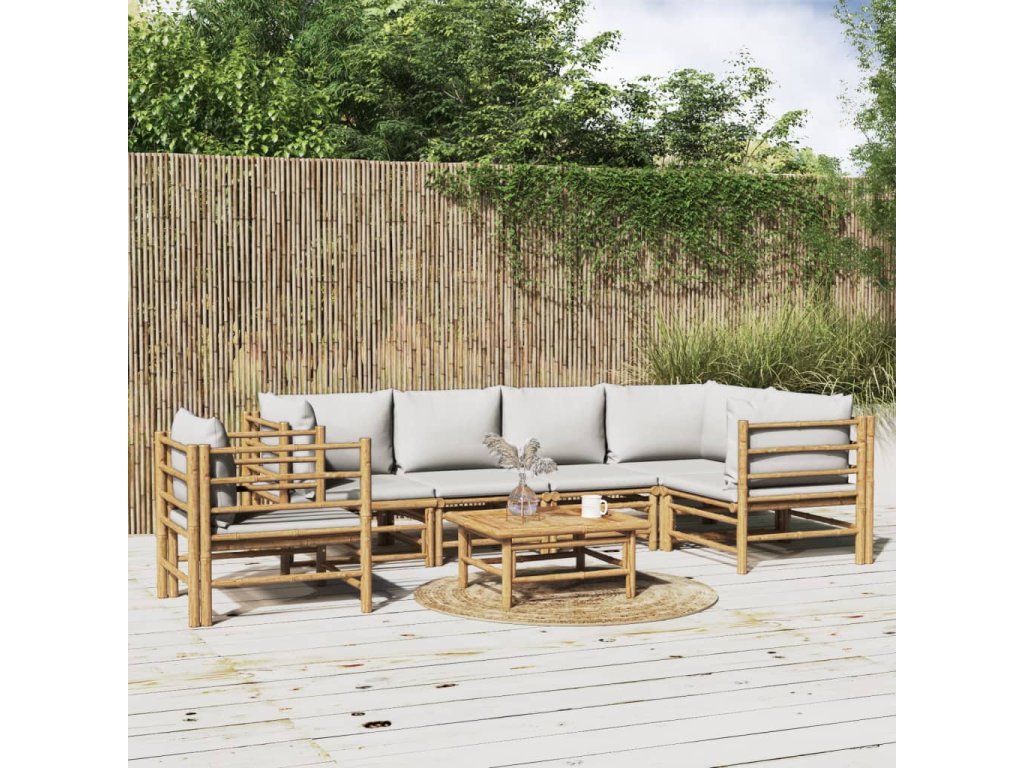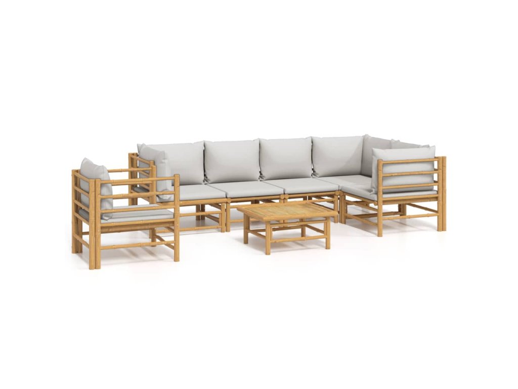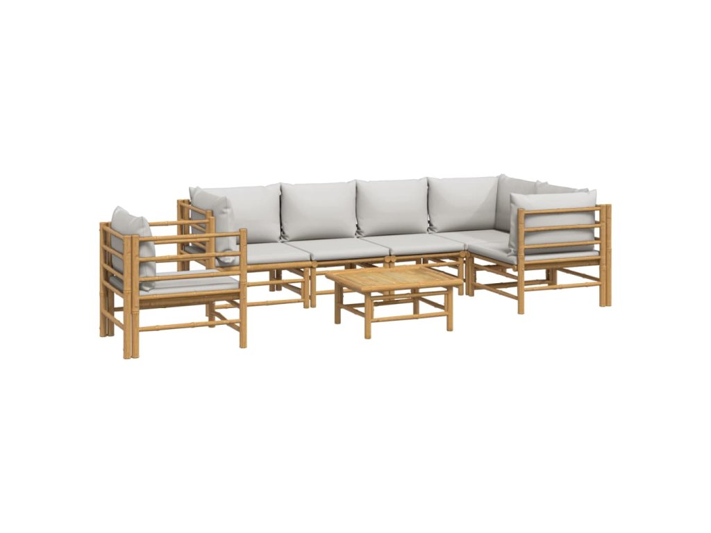 7dílná zahradní sedací souprava světle šedé podušky bambus 3155109