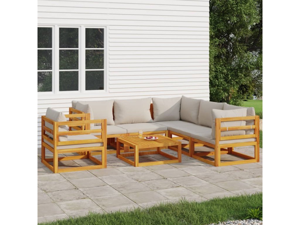 7dílná zahradní sedací souprava světle šedé podušky masiv 3155289
