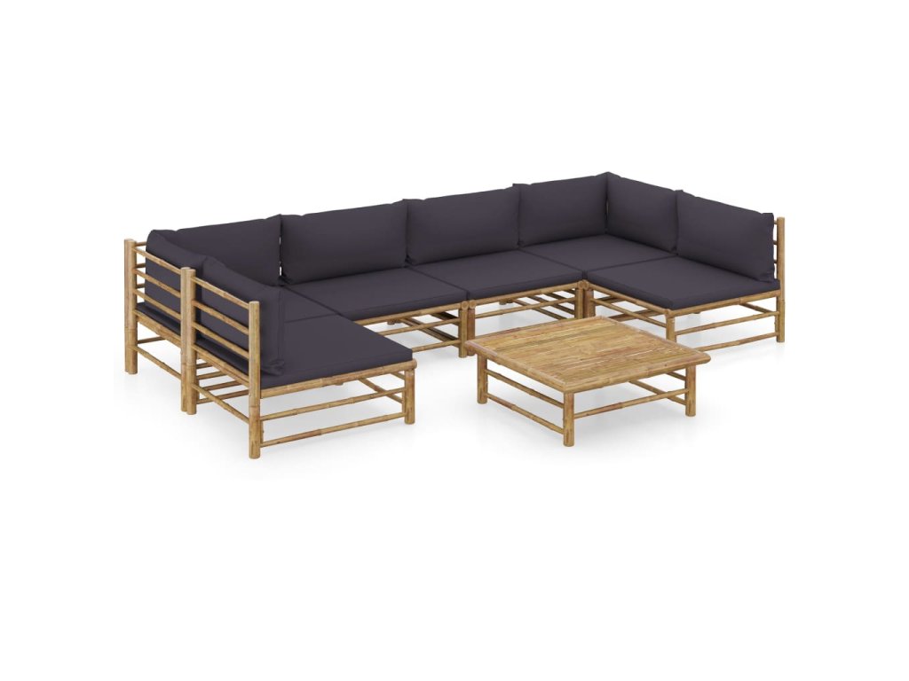 7dílná zahradní sedací souprava + tmavě šedé podušky bambus 3058234