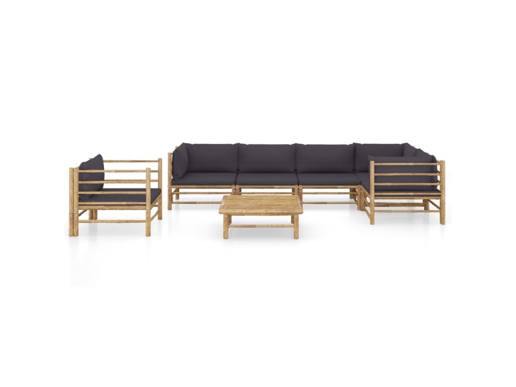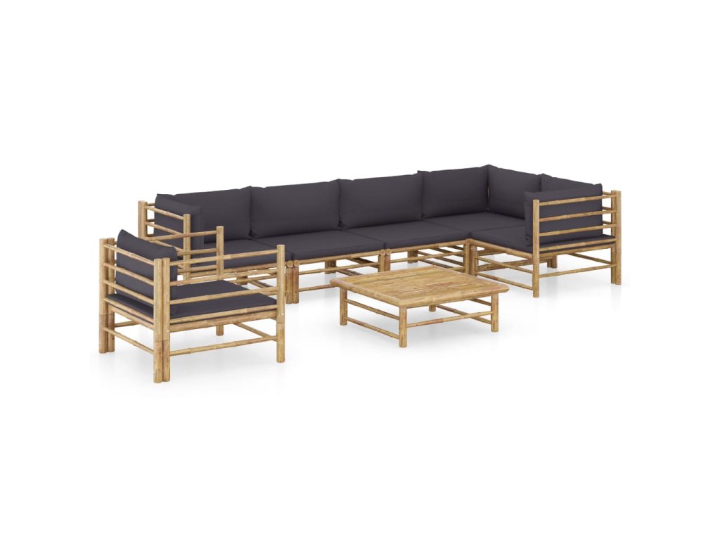 7dílná zahradní sedací souprava + tmavě šedé podušky bambus 3058248
