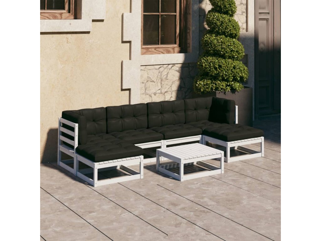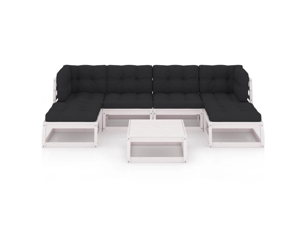 7dílná zahradní souprava s poduškami bílá masivní borovice 3077120
