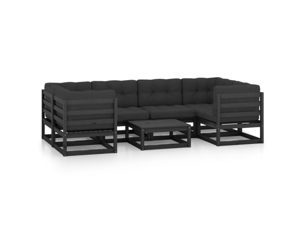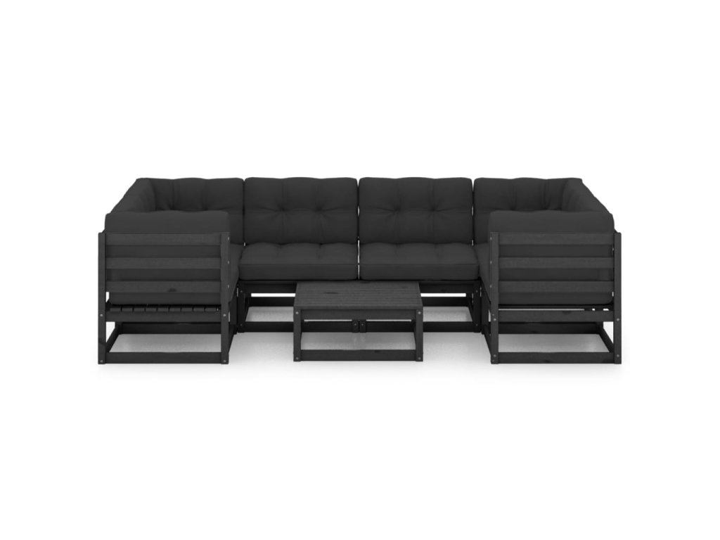 7dílná zahradní souprava s poduškami černá masivní borovice 3077303