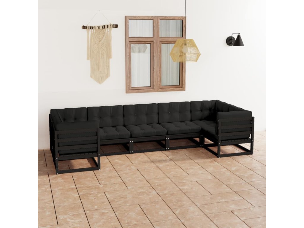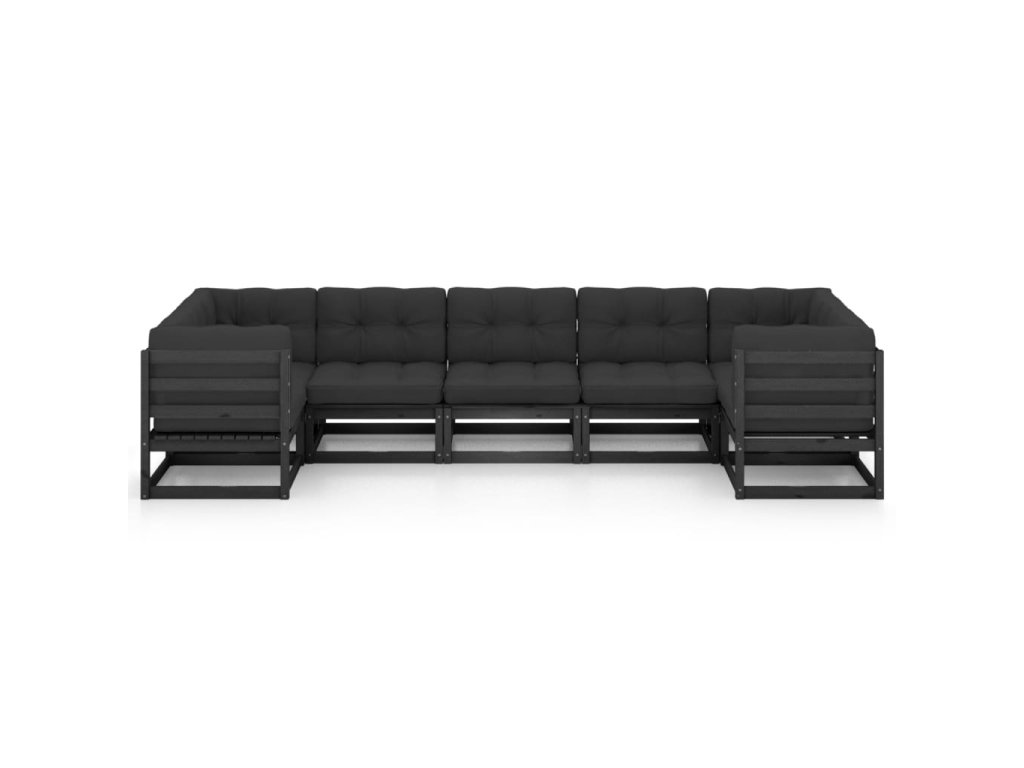 7dílná zahradní souprava s poduškami černá masivní borovice 3077308
