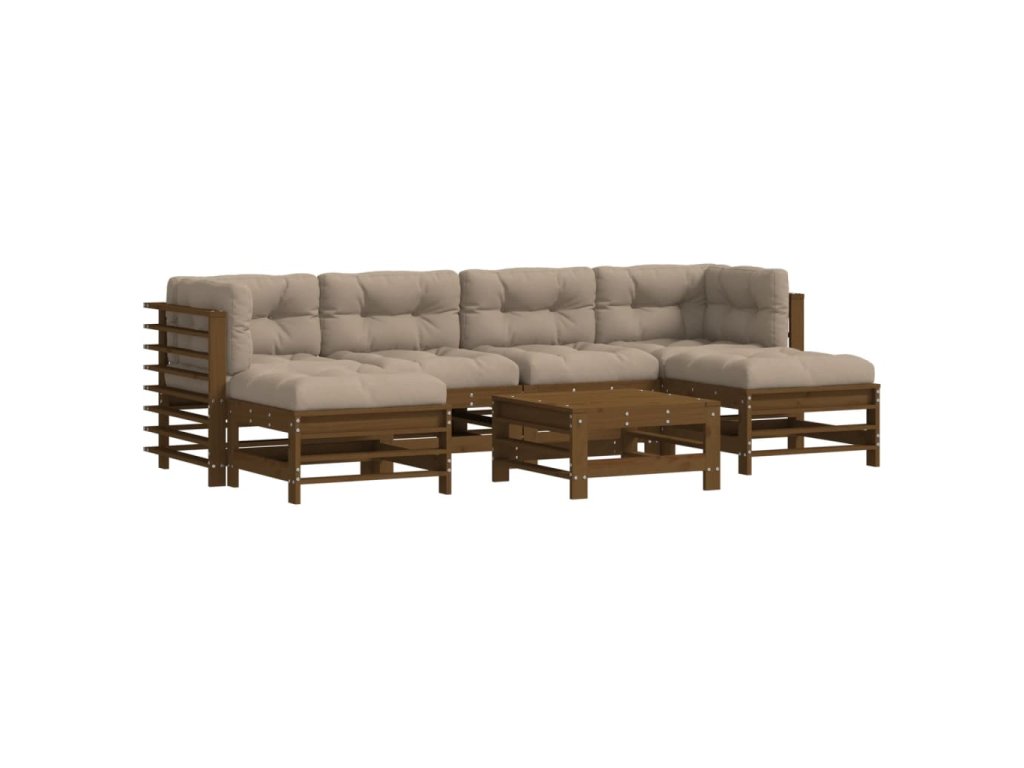 7dílná zahradní souprava s poduškami medově hnědá masivní dřevo 3185951