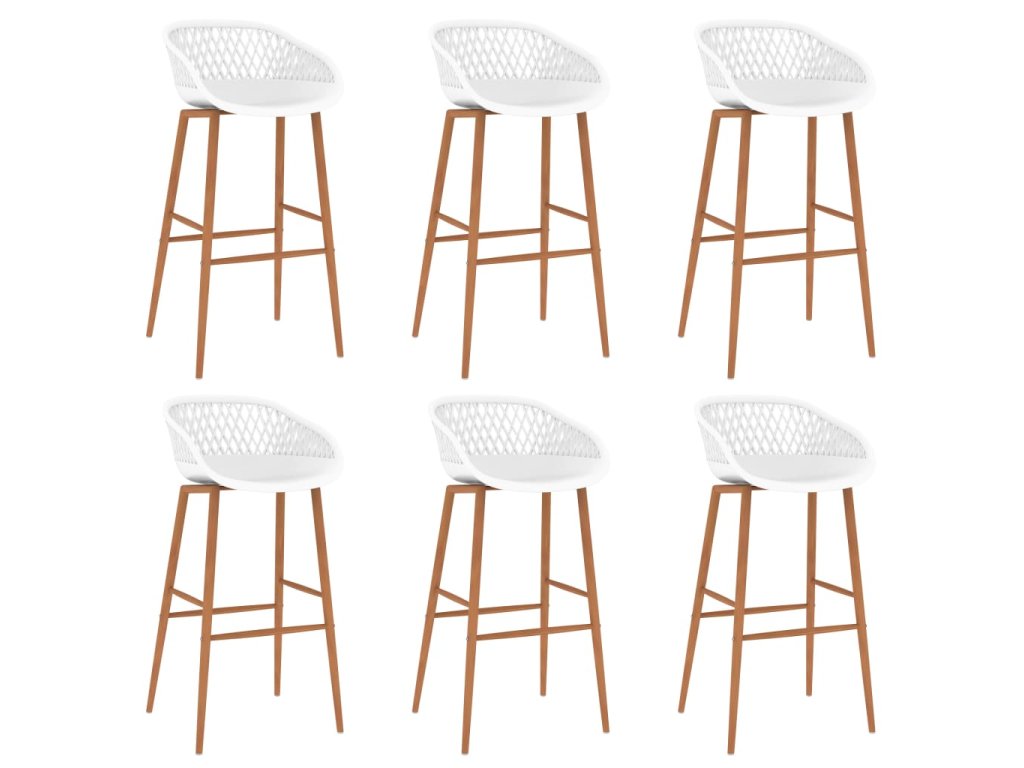 Náš vysoký stůl má horní desku z odolné MDF a silné kovové nohy, které svým vzhledem připomínají dřevo. Barové stoličky mají ergonomicky tvarované sedáky s integrovaným nízkým opěradlem v síťovaném provedení. Jelikož jsou vyrobené z robustního PP a podepírají je pevné kovové nohy s termotransferovým potiskem v imitaci dřeva, jsou mimořádně bytelné a dlouho vám vydrží.