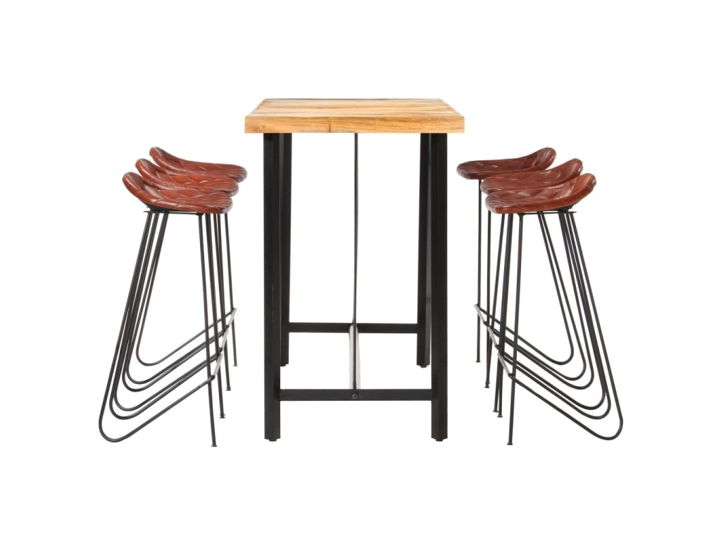 7dílný barový set masivní akácieové dřevo a pravá kůže 278767