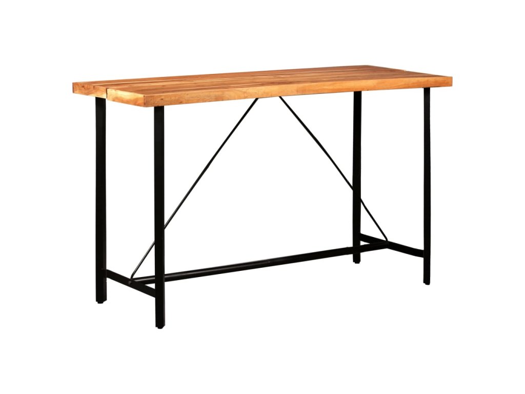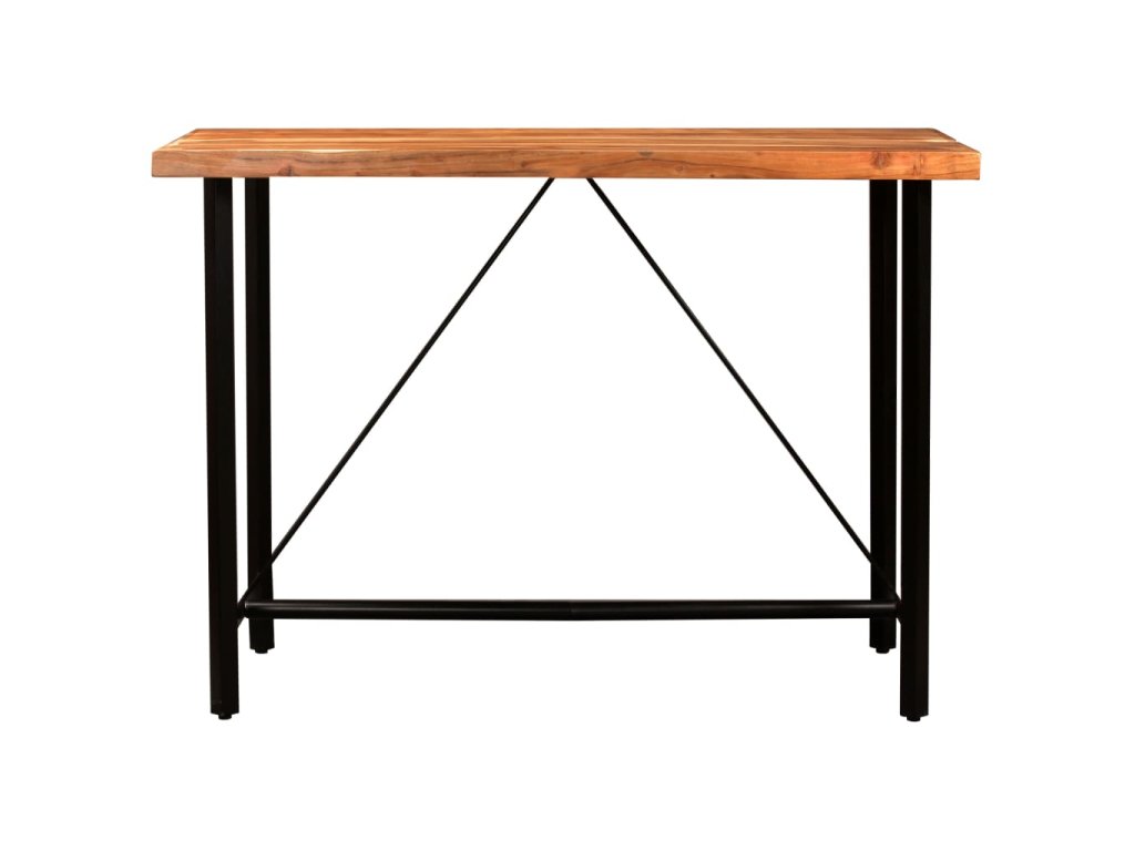 Barový stůl je vyrobený z masivního akácieového dřeva. akácie, také známý jako rosewood nebo palisandr, je tropické tvrdé dřevo oceňované pro svou bohatou kresbu. Barový stůl je pevně podepřený silnými ocelovými nohami, které mu jednak zajišťují dlouhou životnost a jednak zdůrazňují jeho působivý industriální styl. Perfektní řemeslné zpracování je zárukou, že byl každý krok výrobního procesu provedený s největší péčí, ať už se jednalo o leštění nebo lakování.