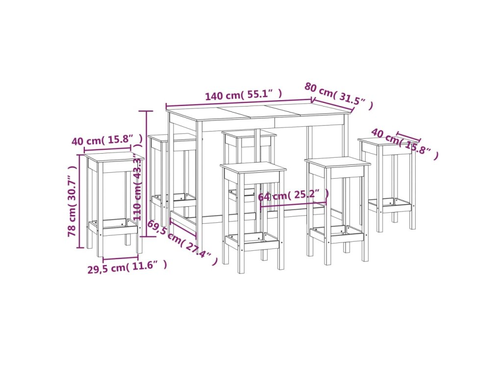 - Rozměry barového stolu: 140 x 80 x 110 cm (Š x H x V)