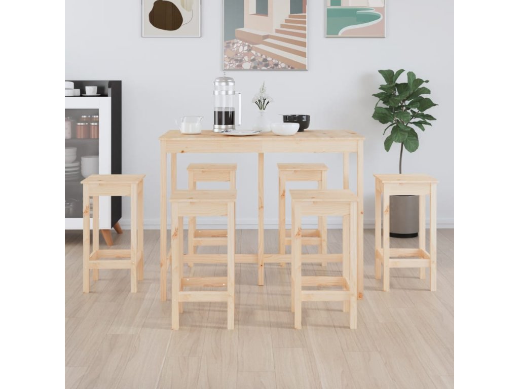 - Masivní borové dřevo: Barový set je vyroben z masivní borovice. Masivní borové dřevo je krásný přírodní materiál. Má rovnou kresbu a obsahuje suky, které materiálu dodávají jeho charakteristický, rustikální vzhled.