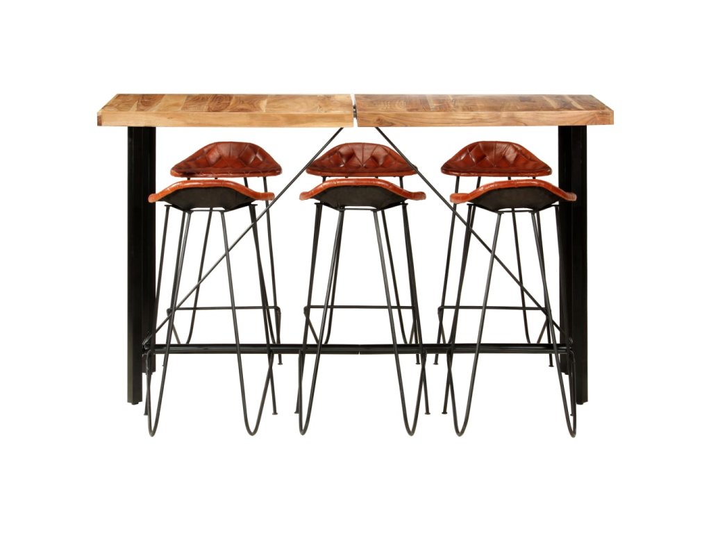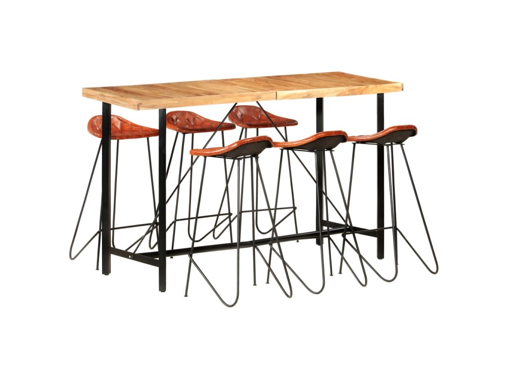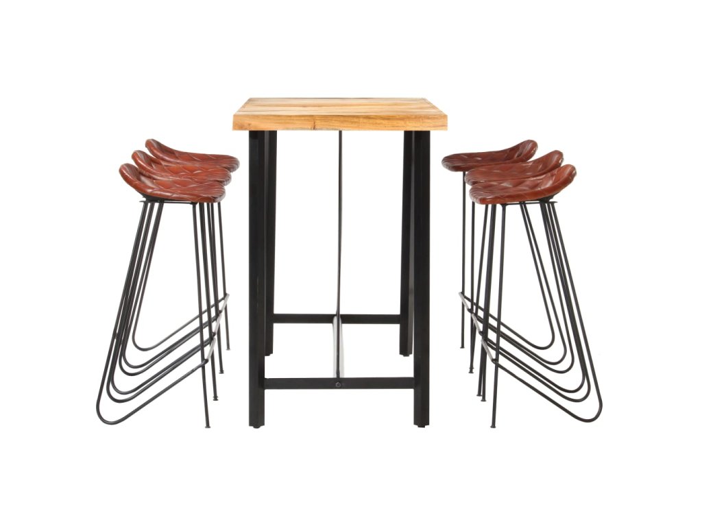 7dílný barový set masivní dřevo a pravá kůže 278766
