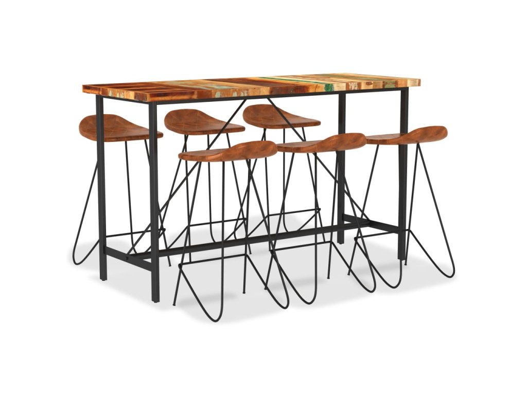 7dílný barový set masivní recyklované dřevo a pravá kůže 3053447