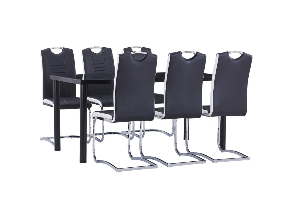 Stůl má hladkou stolní desku z tvrzeného skla, kterou snadno očistíte vlhkým hadříkem. Práškově lakovaný kovový rám přispívá k robustní konstrukci a zaručuje jeho výtečnou stabilitu a odolnost. Židle jsou čalouněné měkkou umělou kůží a silně polstrované, takže vám poskytnou maximální pohodlí. Sedáky mají ergonomický design, abyste se na nich mohli příjemně uvelebit. Židle mají chromovaný ocelový rám, což jim zajišťuje mimořádnou robustnost a stabilitu. Na opěradle navíc najdete praktickou rukojeť, aby se vám lépe přenášely. Montáž jídelní sestavy je jednoduchá.