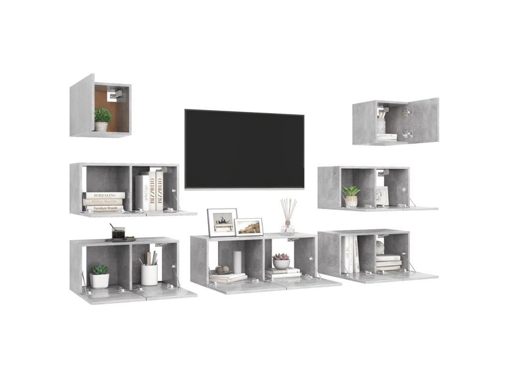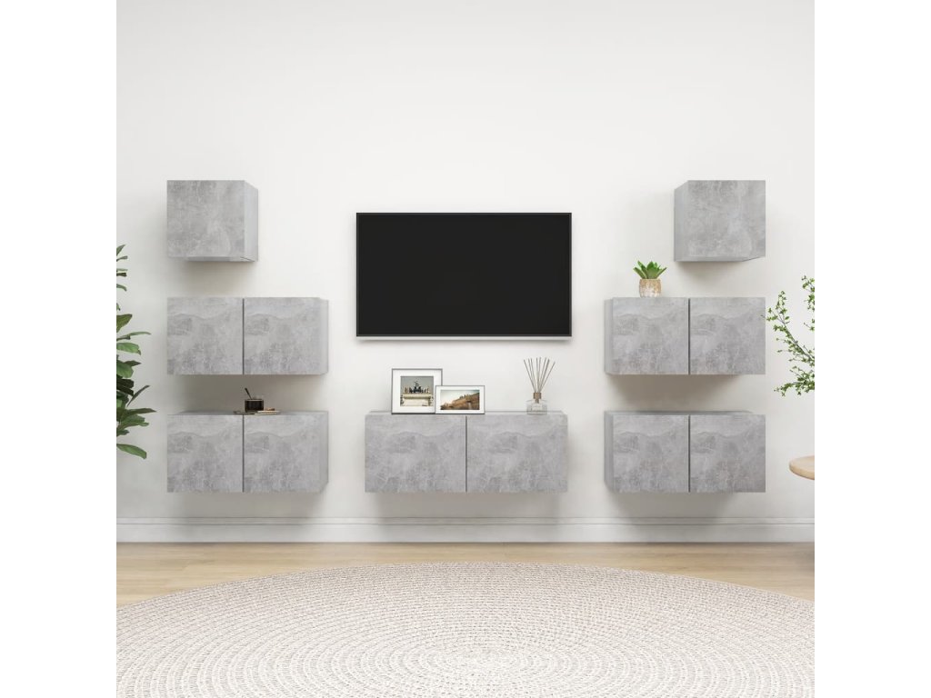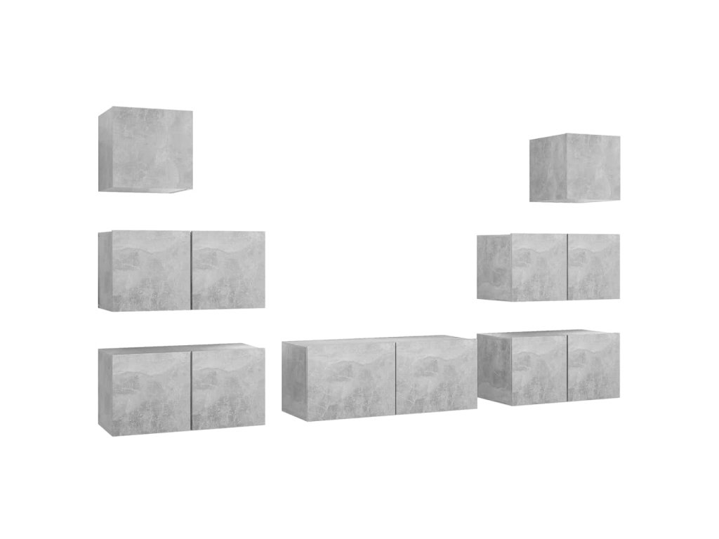 7dílný set TV skříněk betonově šedý kompozitní dřevo 3079132