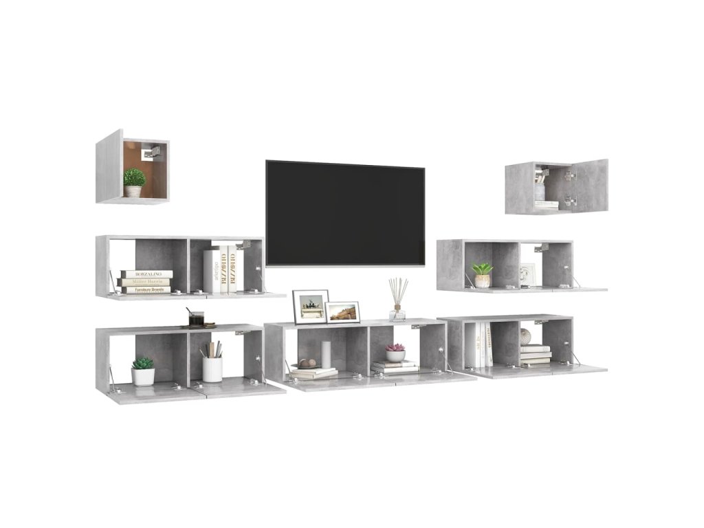 7dílný set TV skříněk betonově šedý kompozitní dřevo 3079133