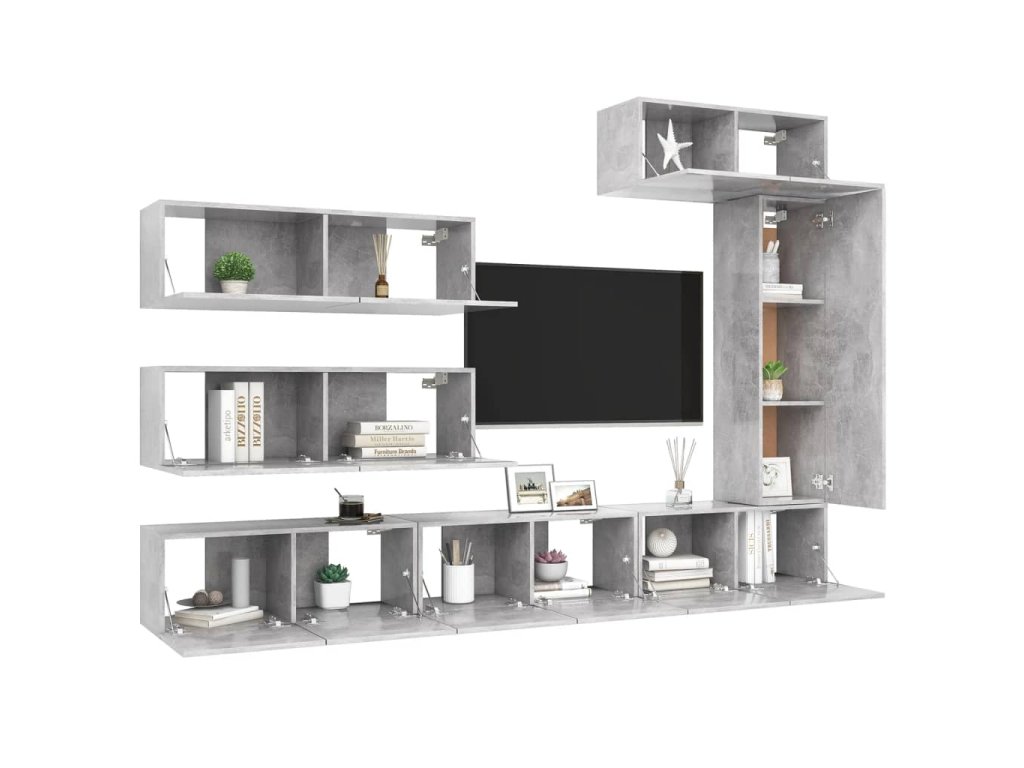 7dílný set TV skříněk betonově šedý kompozitní dřevo 3079137