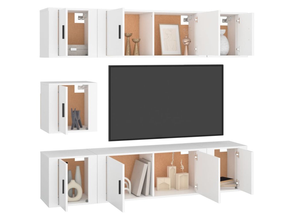 7dílný set TV skříněk bílý kompozitní dřevo 3188662
