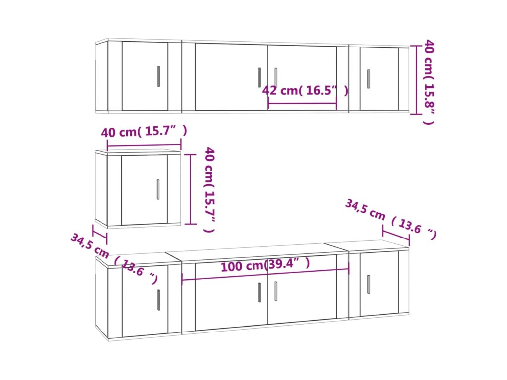 - 5x TV skříňka: 40 x 34,5 x 40 cm (D x Š x V)