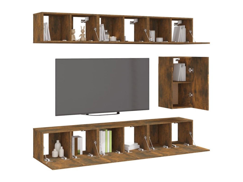 7dílný set TV skříněk kouřový dub kompozitní dřevo 3120311