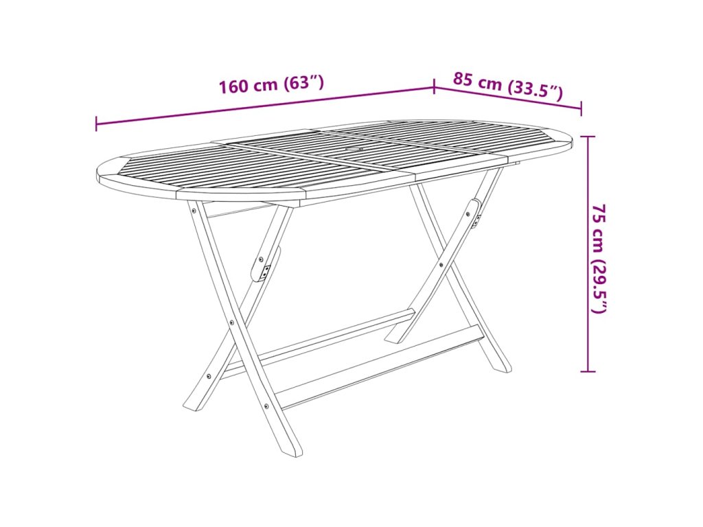 Zahradní jídelní set je vyrobený z masivního akáciového dřeva. Jedná se o tvrdé dřevo z tropů, které je odolné vůči povětrnostním vlivům a má dlouhou životnost. Olejem napuštěný povrch nábytku snadno vyčistíte navlhčeným hadříkem. Jak zahradní židle, tak stůl je možné složit, aby zbytečně nepřekážely, když je zrovna nepoužíváte.